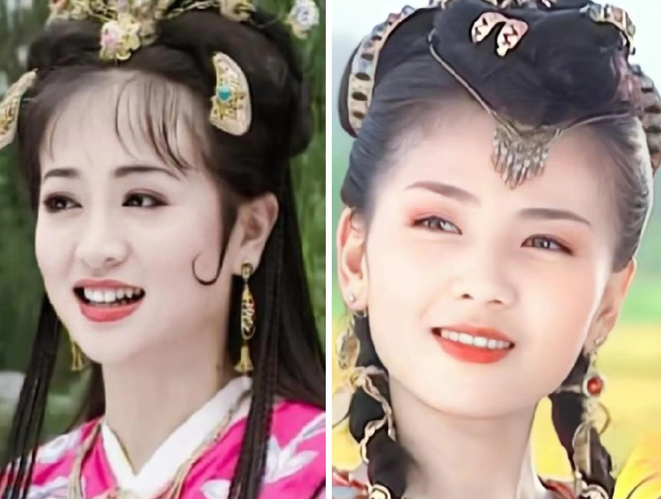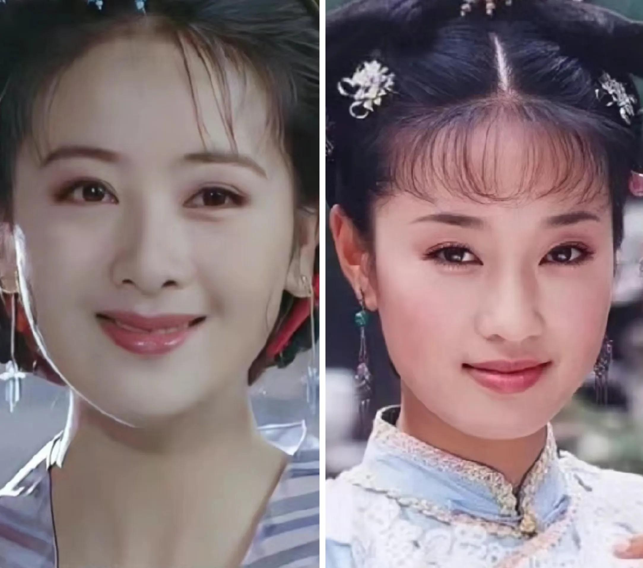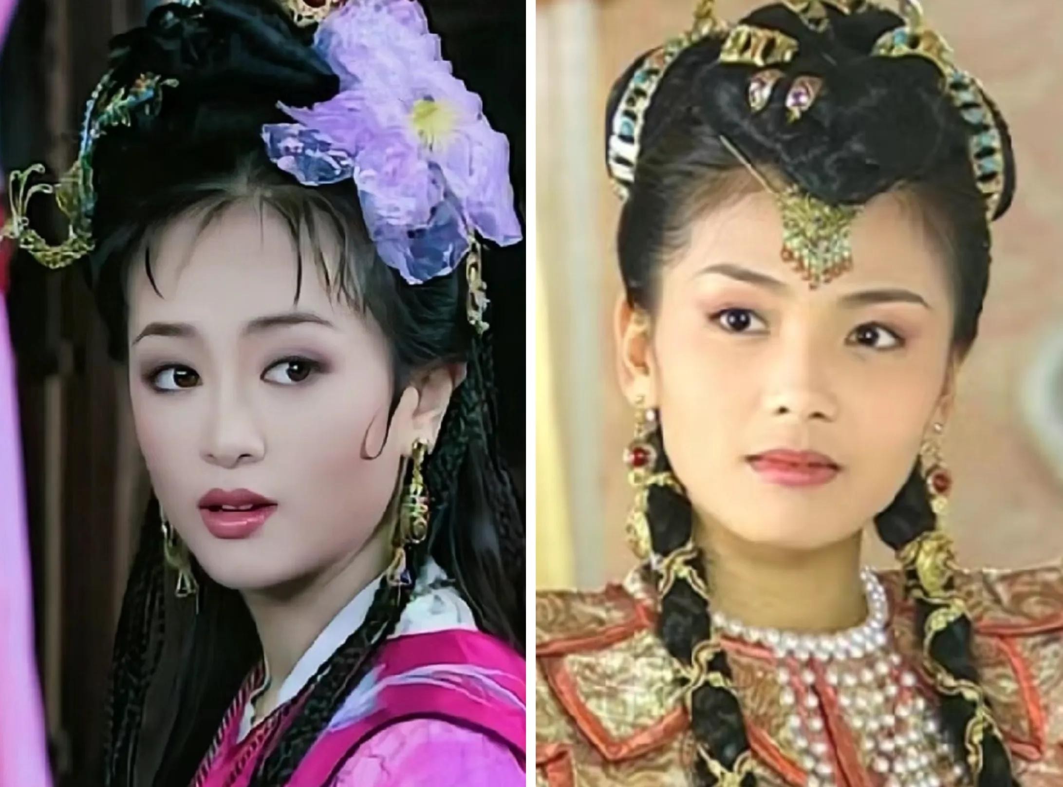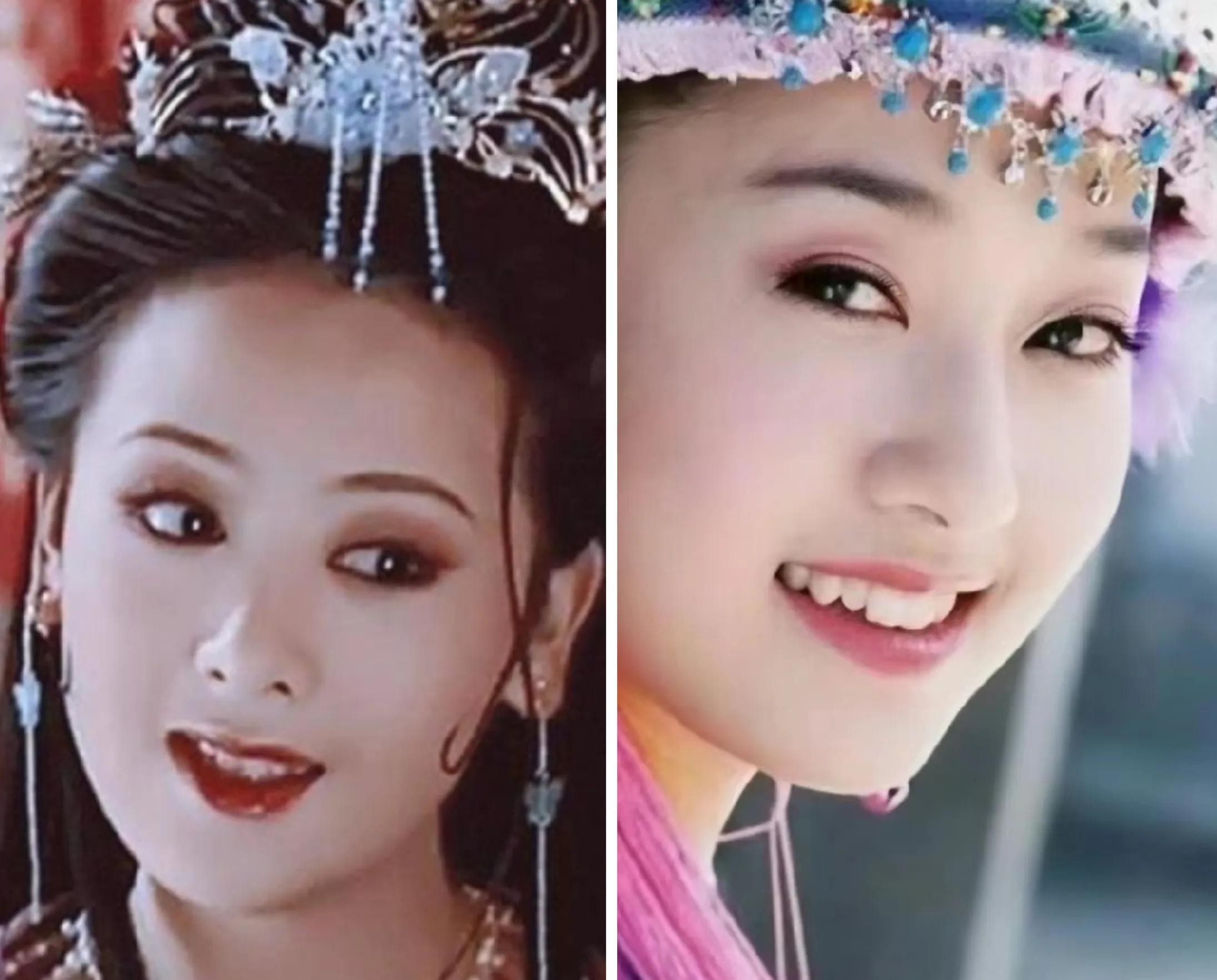 而右图是还珠的小燕子,妆容看上去有点脏脏的感觉,又加上剧情太过于现实,反而显得她的娇俏灵动也不太讨喜了。