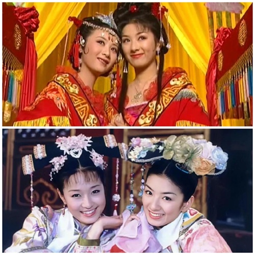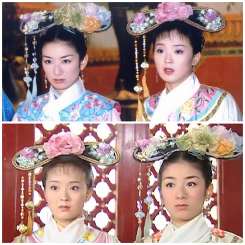 以上这组靓照图,都是上错花轿嫁对郎和还珠三的女主和女配的对比照,我个人还是觉得上错花轿嫁对郎里面的造型和服饰更好看,当然都不是一个朝代的服饰了,完全不是一个类型。