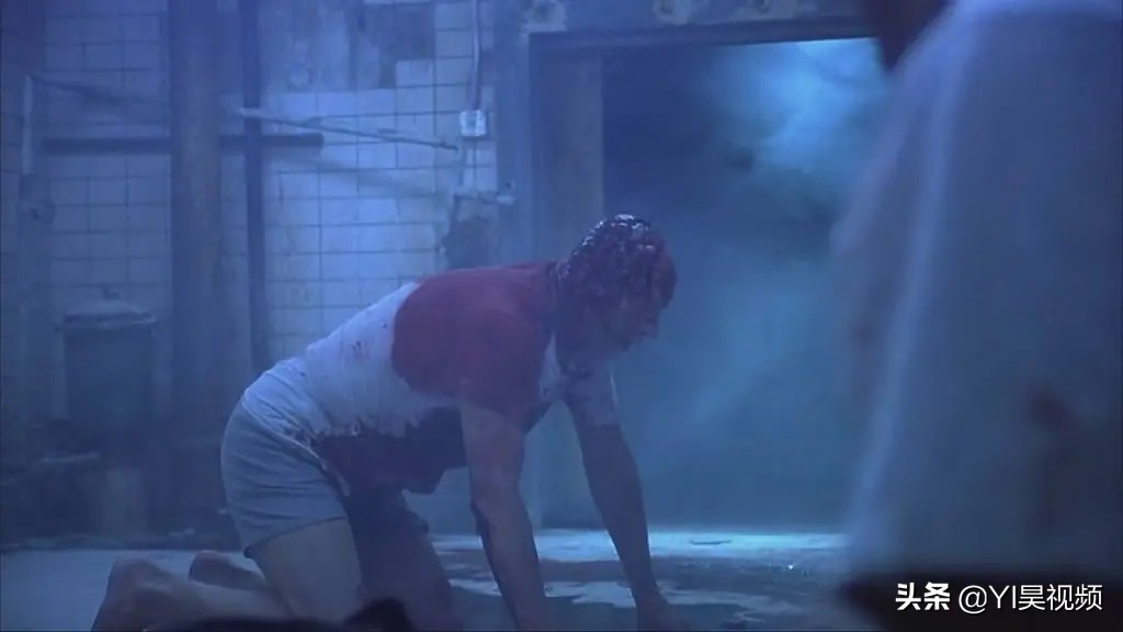 就在搭档营救受害人的时候,黑人警察一时大意被杀人狂挥刀砍向了脖子,