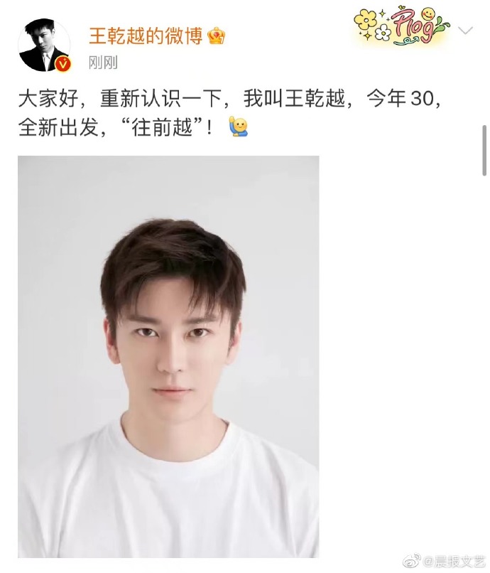 原标题:演员王嘉宣布改名为王乾越 发文表示全新出发