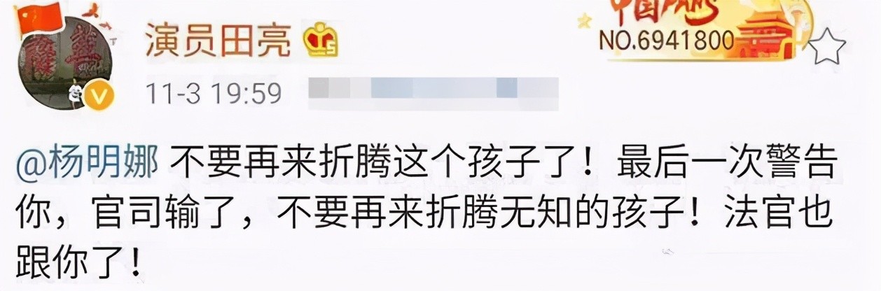 可收到钱的他却开始耍赖,不仅拒绝杨明娜探望孩子,还不断地侮辱她和骚扰她的家人。