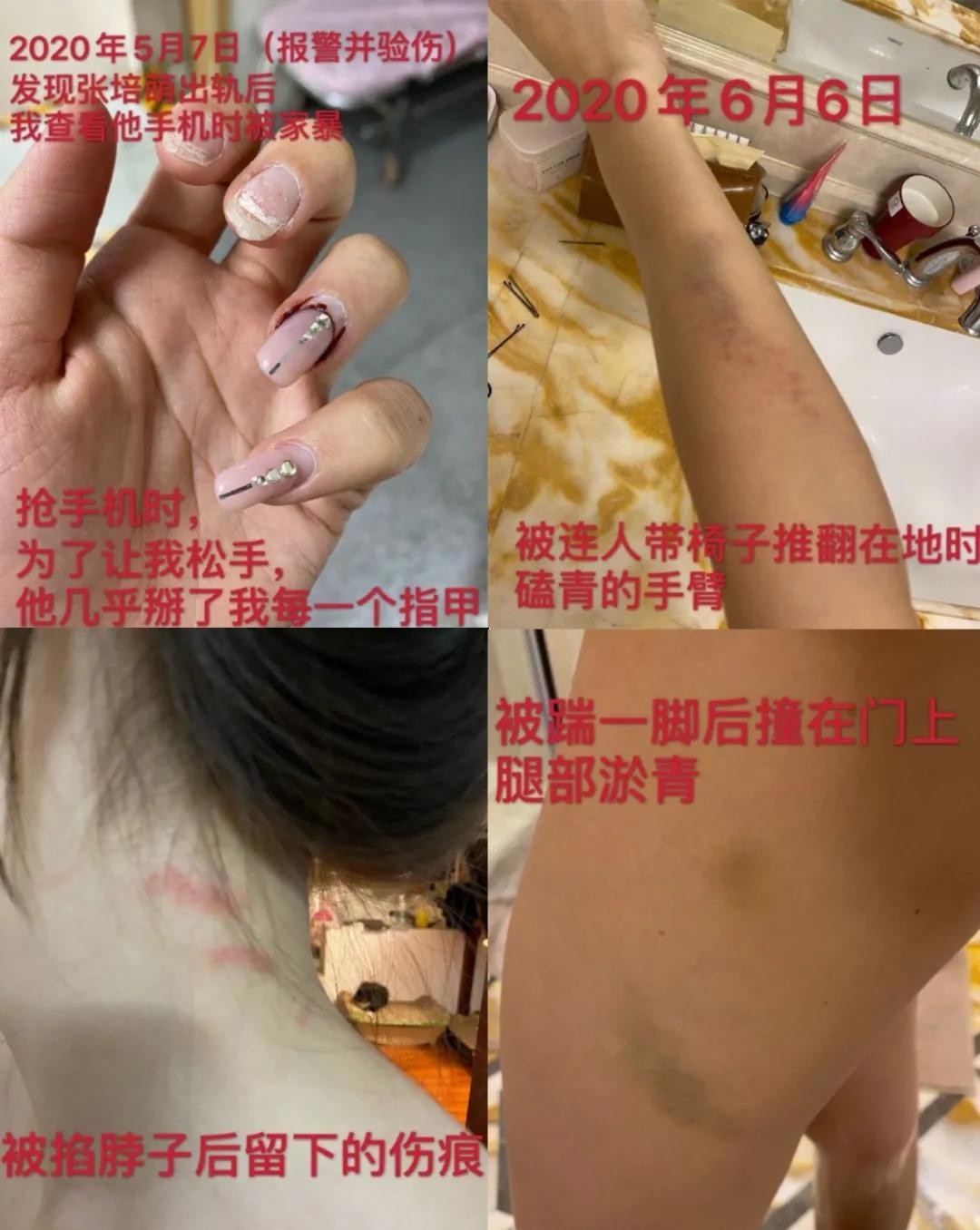 怀孕7个月,张莫寒胳膊被抓伤,伤痕大面积发紫;