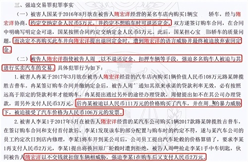根据警方的通报,有群众在隋宏洋所经营的4S店看车时,被以语言恐吓、殴打致伤等各种方式强迫买车,甚至还遭到了非法拘禁。