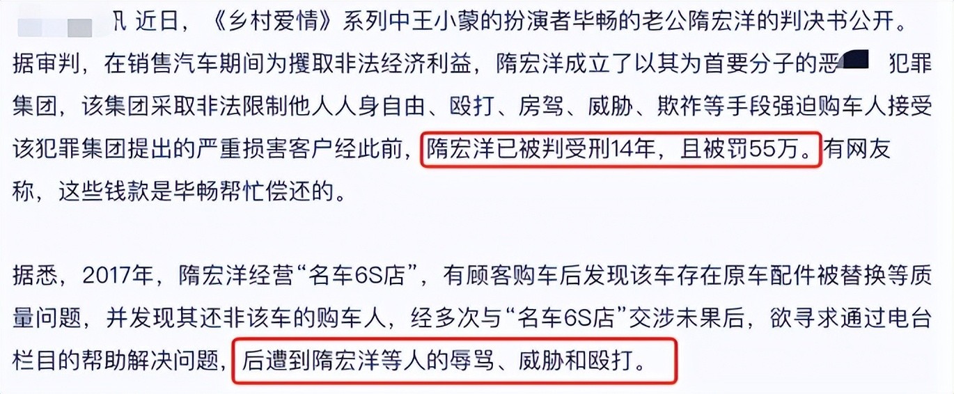 毕畅曾因为出演《乡村爱情》“王小蒙”一角而被大众熟知,却也因为丈夫“涉黑”事件受尽非议。
