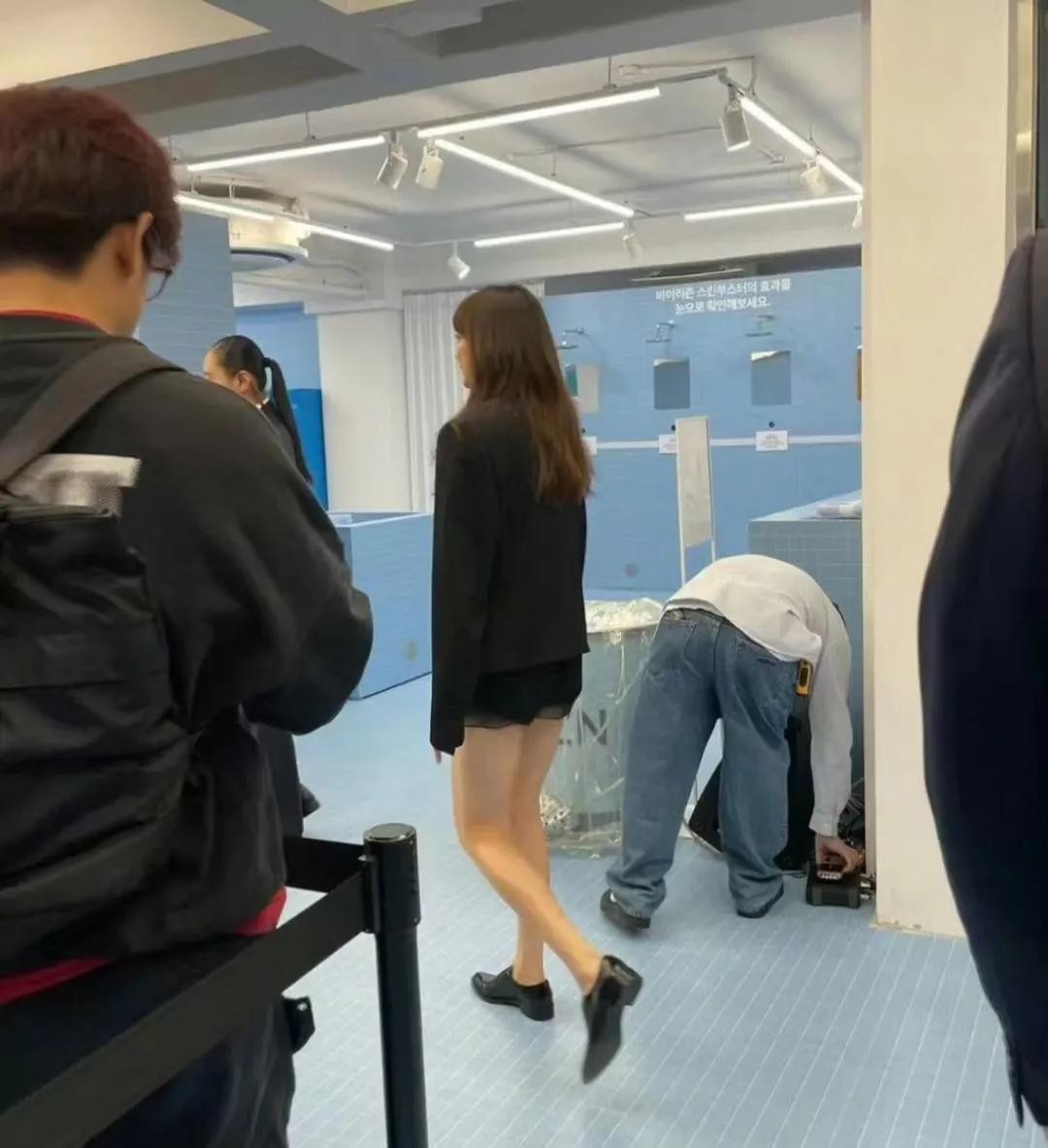 这一身穿搭让她看起来像是腿长有两米的既视感,有偶遇她的路人也晒出了生图。