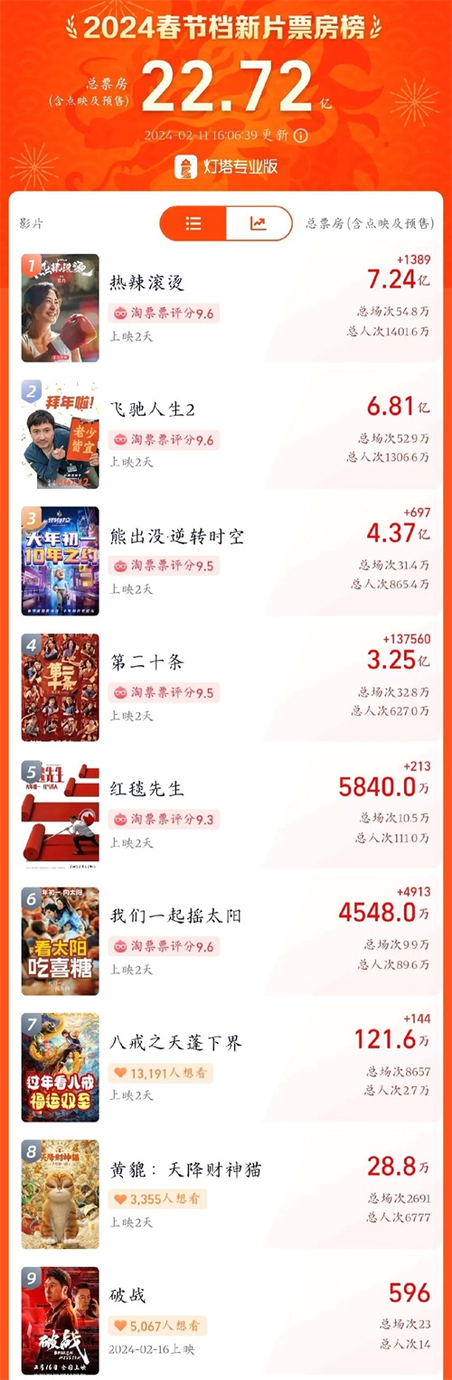 2024春节档电影票房排名:《第二十条》仅排第四,第一名众望所归