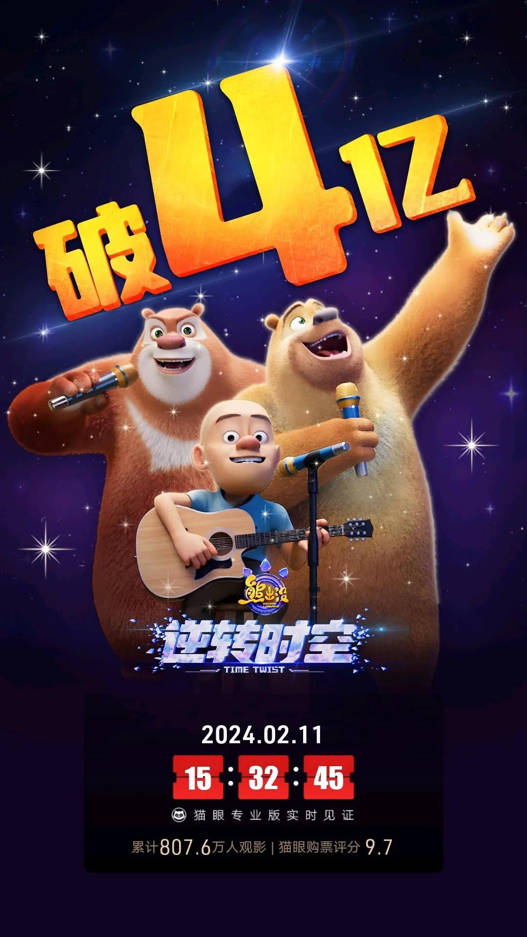 《熊出没·逆转时空》票房已经达到了4.37亿元,在2024春节档电影票房榜中排名第三,比赵丽颖主演的《第二十条》票房还要高。