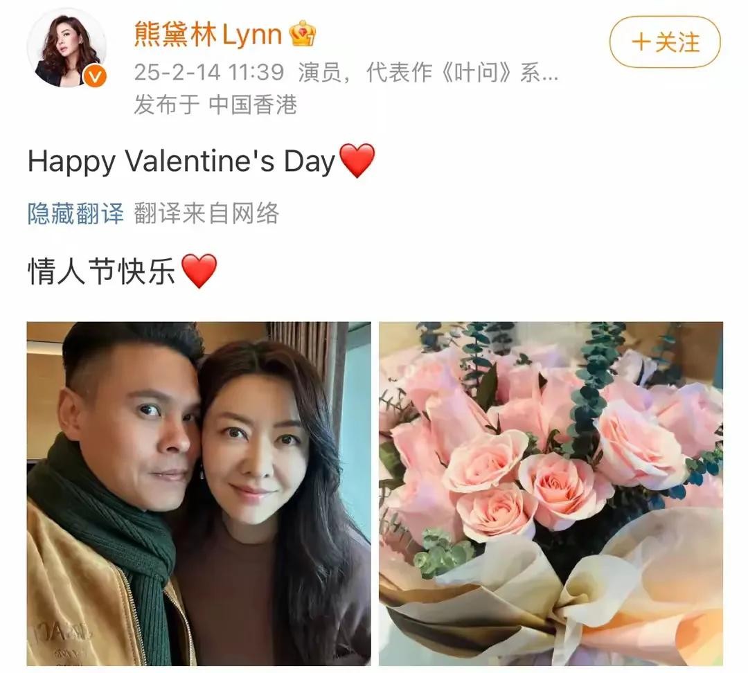 郭富城前女友熊黛林情人节与二婚富豪老公晒照。45岁身材性感火辣