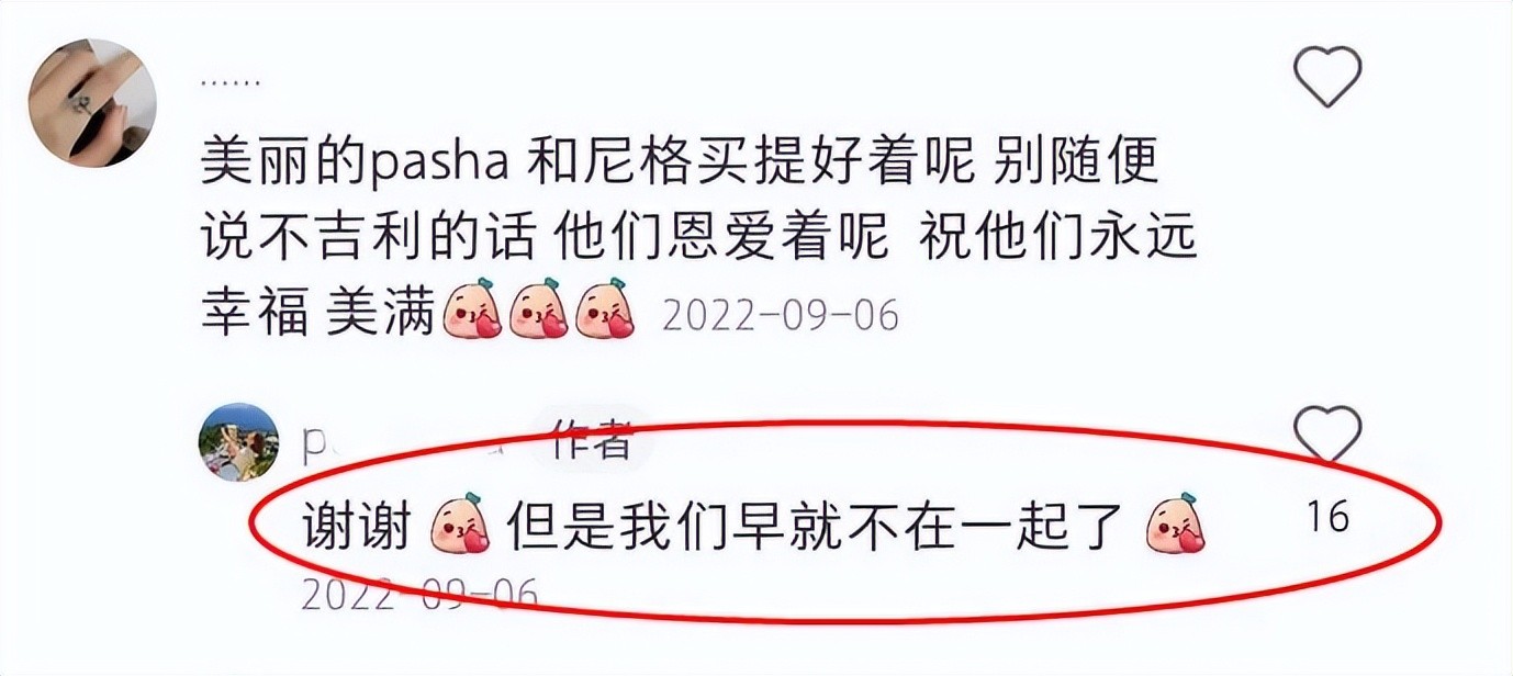 没想到祝福刚送出,就被帕夏本人亲手打脸,帕夏礼貌回复:“谢谢,但是我们早就不在一起了。”