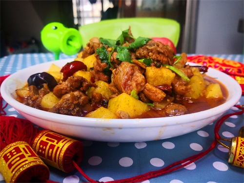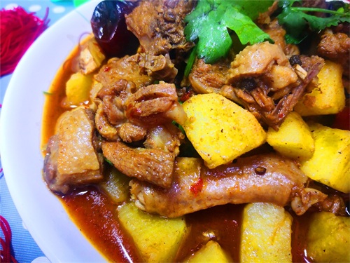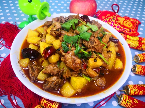 这道菜是标准的麻辣重口,下饭标配,辣的跳麻的爽,是我老婆最喜欢最熟悉的味道,用她的话说就是巴适的很。前几天一道酸萝卜烧鸭子彻底征服了她的味蕾,使得她对于鸭肉再也不抵触了。再加上这道菜还放了土豆,整体形似大盘鸡,满登登的一大盘子,她是吃的开心的不得了,眼不眨两碗饭就已经下肚。