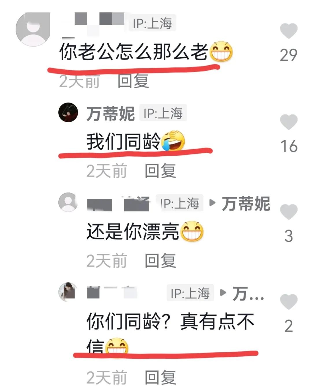 万蒂妮和老公好似二代人,面对网友的质疑,万蒂妮是怎么回答的?最近就有网友直接问万蒂妮“你老公怎么那么老”,这位网友也真够唐突,哪有这样说的,可是万蒂妮似乎并没生气,反而大方的回答“我们同龄”,短短四字就给老公赚足了颜面。