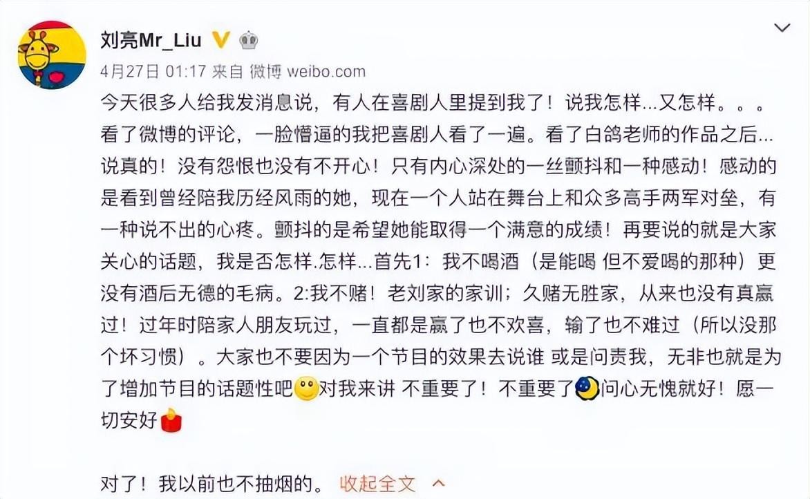 而刘亮白鸽两人则比较独特,表演没有脏口,也更能适应舞台。