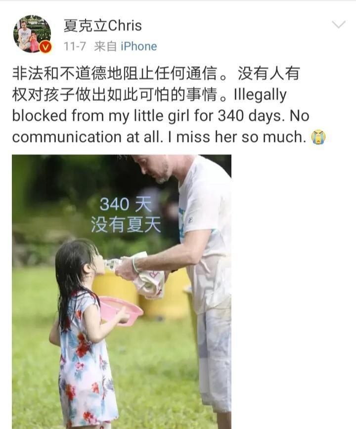 夏克立还控诉黄嘉千,说她不让自己见女儿,父女两人已经有近一年没有见面了。