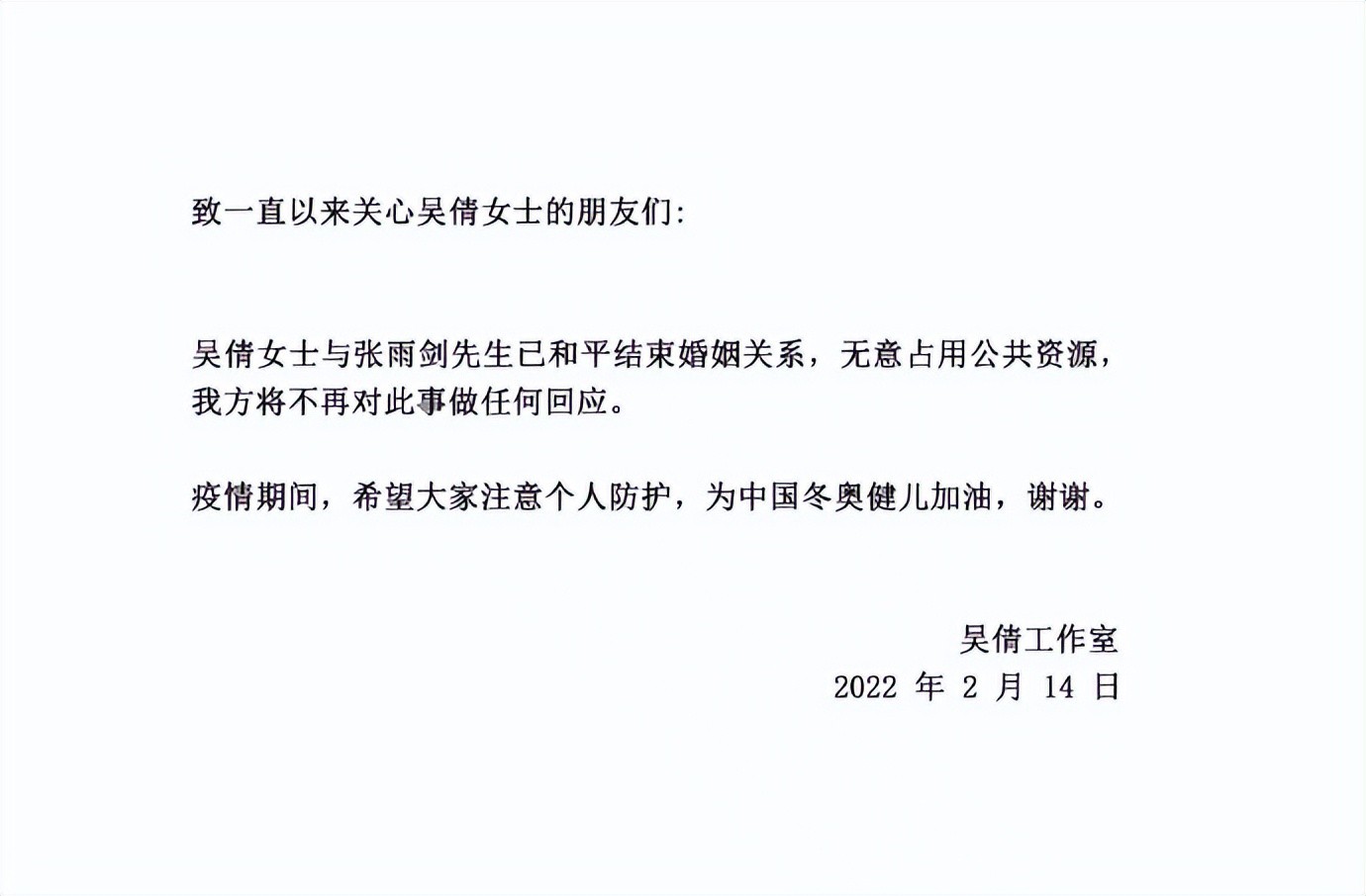 2月14日情人节当天,吴倩官宣两人离婚,赢得了网友们的一片叫好。