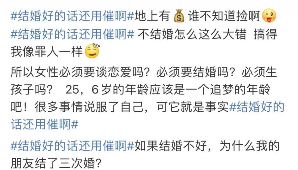 " 结婚好的话还用催吗?地上有钱谁不知道捡。"