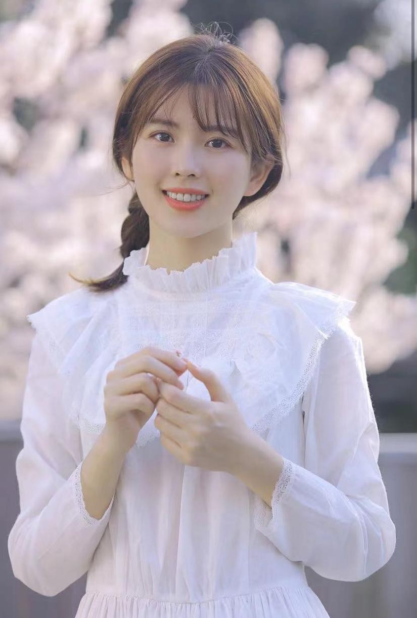 乖巧的齐刘海发型增加了几分温婉感,彩色发带的点缀又打破了发型的单调感,妥妥的邻家女孩模样。虽然五官不属于精致型,但搭配得很和谐,十分耐看。