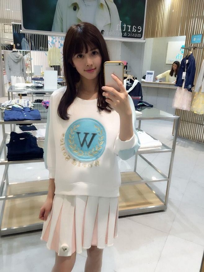 她的穿搭多以基础单品为主,偶尔用小面积的印花进行点缀,清新的色系很符合她的清纯甜美风格。