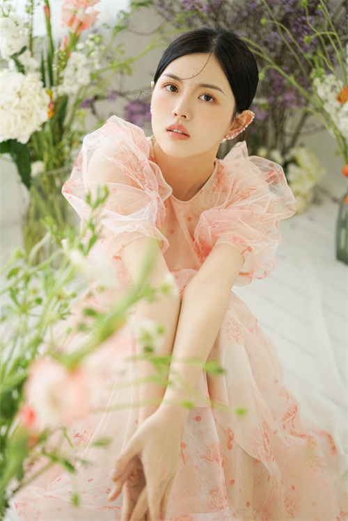 妆容上钟恩淇则是趋向于了标准的网红风,一身粉色连衣裙搭配减龄的丸子头发型,整个人的风格跟“半藏森林”有些相似,很符合现下的黑长直纯欲风。