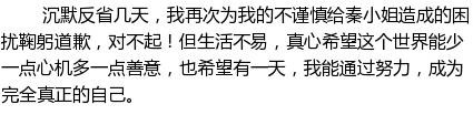 第四:我就是有什么言语不当,也是奋斗所迫,你秦小姐有话语权不过是你火了,等我火了,我也可以不用再装了。