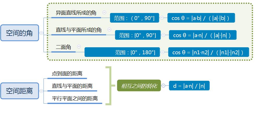 空间的角、空间距离思维导图-高考数学一轮复习思维导图