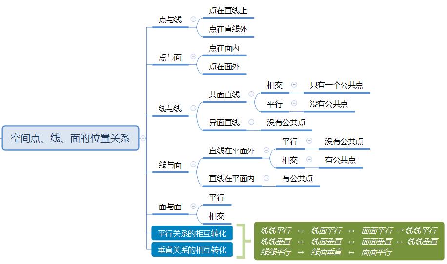 空间点线面的关系考察重点在于平行和垂直关系,所以大家一定要掌握平行垂直之间的相互转换,例如,由线线平行对到线面平行,由线面垂直推导面面垂直等等。