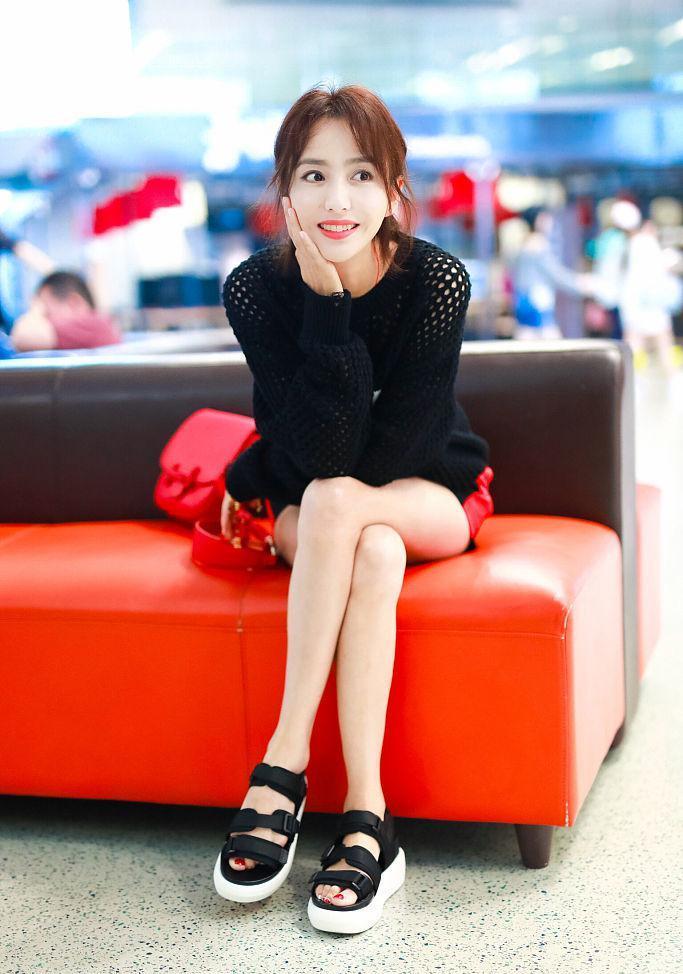 在加上最终以脚踩的凉鞋作为结尾,整个造型也是简约朴素接地气,在加上丫丫那无敌的美颜,当然是特别好看了