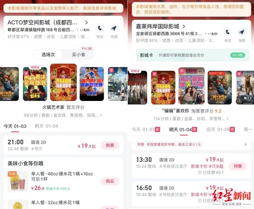 这两部电影票价只要19.9元,成都这些影院已能看