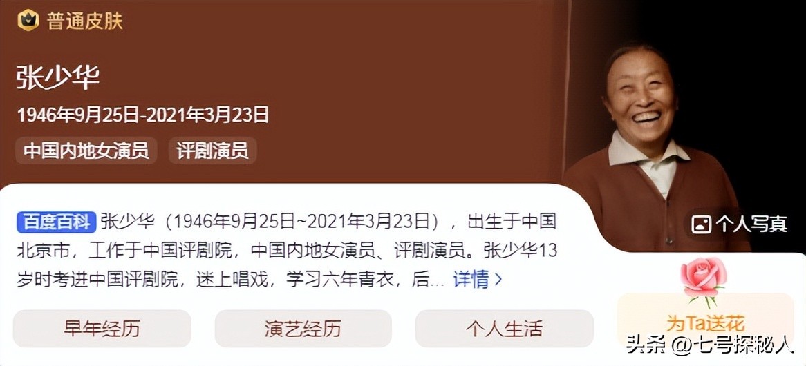 塑造无数经典母亲角色的“丑娘”张少华于2021年3月23日离世。