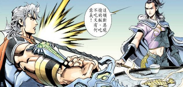《神兵玄奇》第二部最后一段剧情,问天为了让太平改邪归正,特意做了一桌菜,一家三口第一次坐在一起吃饭,铁心又开始作妖了,一言不合就要杀死问天,而且这一次不仅是问天,连自己的儿子她也要杀。