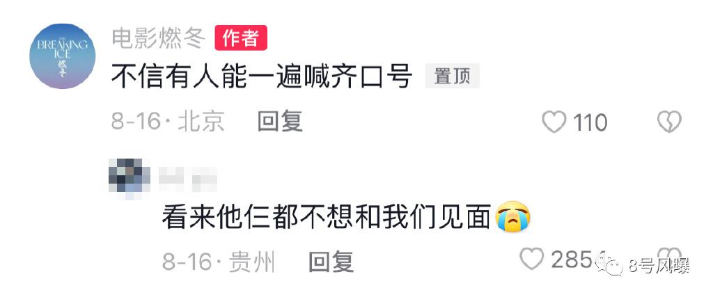 但《燃冬》毕竟不是无门无姓的小电影,铁粉还是有的,对于发疯的网友,他们统一表态:精神 " 文盲 " 看不懂文艺片。