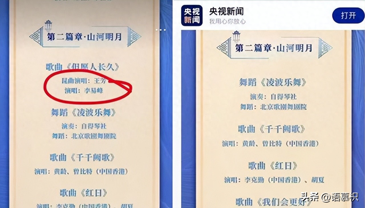 这个传闻近日有了新发展。央视此前官宣李易峰将参加晚上8时的中秋晚会,原本的节目单里标注着其参演节目《但愿人长久》,但前一天下午更新的节目表上,李易峰及节目名字一并已删去。据了解,央视秋晚是采用录播形式播出,李易峰的节目早在十多日前已完成录制,节目「出街」前突然删去李易峰的节目,并不寻常。