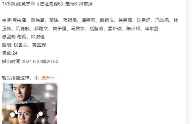 在观众的千呼万唤中终于要播了!《法证先锋 6 幸存者的救赎》来袭,此消息一出瞬间吸引了诸多观众的关注,暂定于 6 月 24 号翡翠台播出,再加上还是原班人马回归,铁三角齐聚,有望再现破案热潮,期待值拉满,想让人不追剧都难。