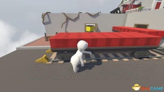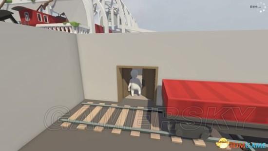 Bob从天而降落到火车关卡,按下抓取键移动Bob将黄色的垃圾箱移开,进入后方的门。