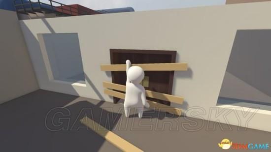 进入到拆除关卡,第一个场景内有一个被木条封住的门,抓住木条向后拽即可拆除木条,将四根木条拆掉后进入门。