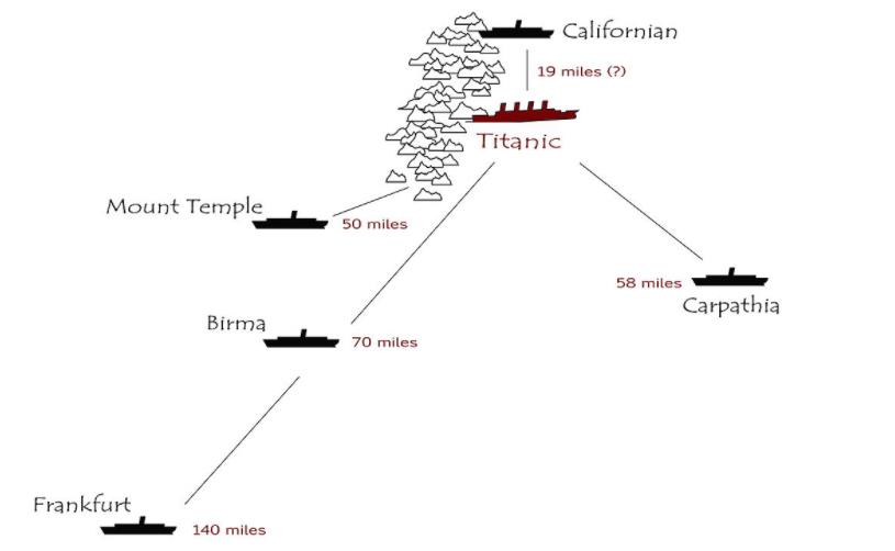 当泰坦尼克号发生事故时,离它最近的是美国的一艘货船“加州人号”(SS Californian,又名加利福尼亚号)。