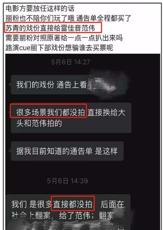 有爆料称,她原定的角色被撤换,戏份被转给范伟、雷佳音,最终只剩“西林”一个边缘角色。