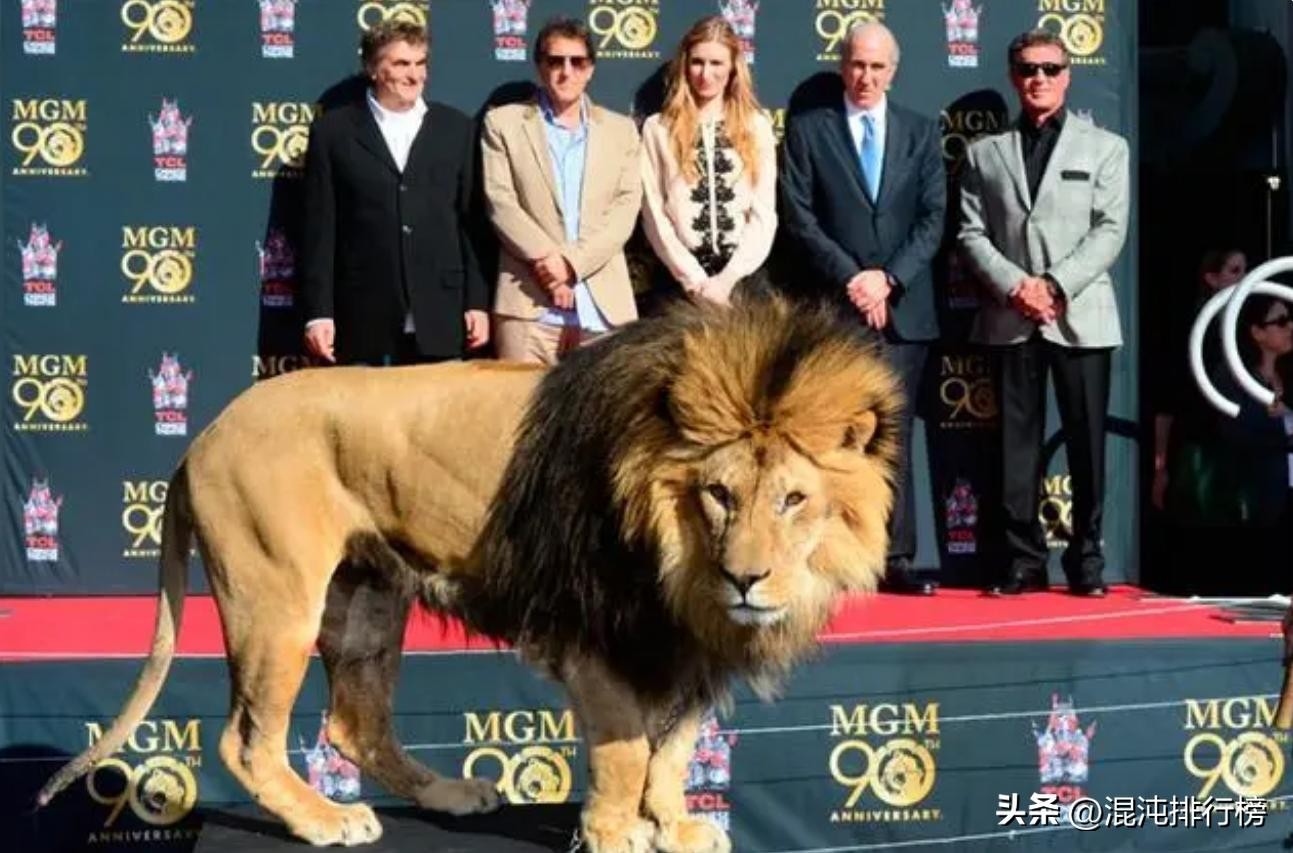米高梅庆祝成立九十周年时,曾找来真狮助兴