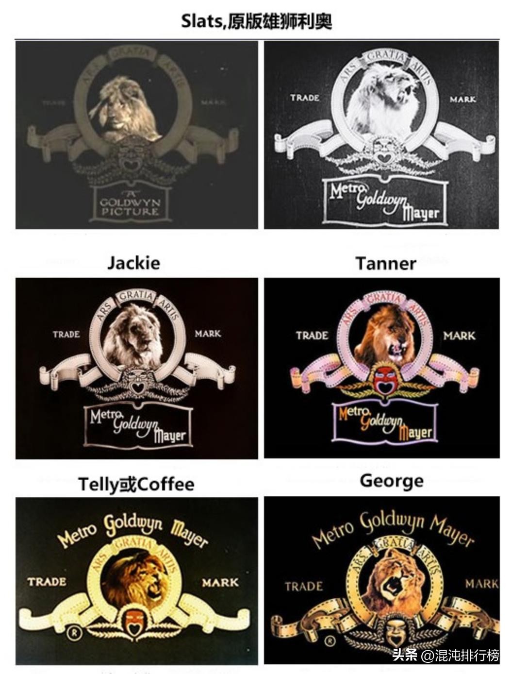 第一头名叫“Slats”,它作为“先锋”占据了米高梅1924年至1928年无声电影的片头。
