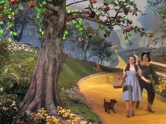 影片讲述了一阵龙卷风把小女孩多萝西从黑白的乡间小屋吹到彩色的梦幻世界,他们在那一幕幕奇幻的探险中,学会了如何培养内涵、智慧和勇气,也体会到亲人的爱胜于一切这个道理。朱迪·加兰这部电影的成功也让音乐剧版的《绿野仙踪》成功地登陆百老汇的戏剧舞台。