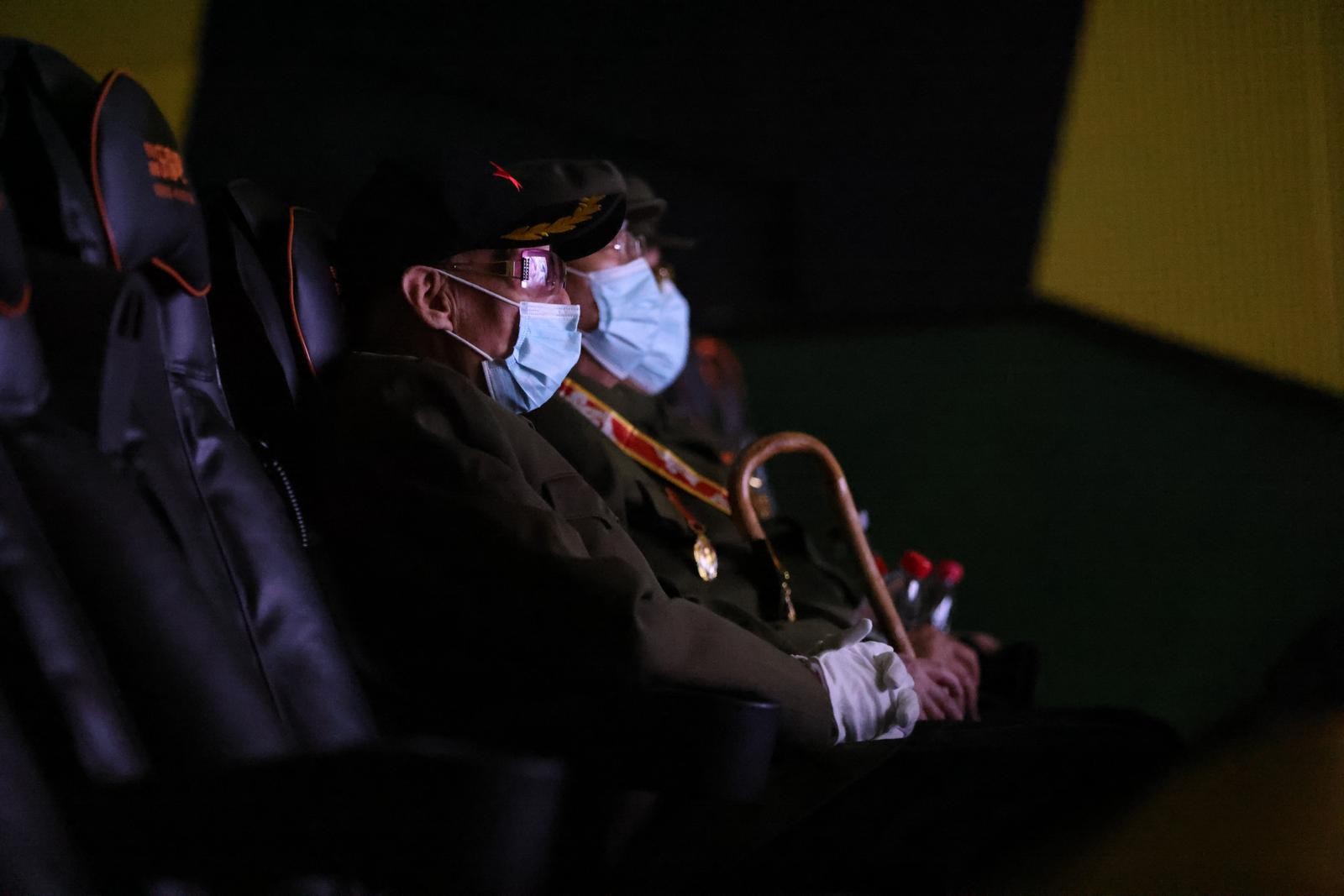 电影时长149分钟,张健始终目不转睛地盯着银幕。张健目睹过战友的牺牲,也经历了一次次舍身忘死的冲锋。当电影里再次出现这些画面时,他的眼里噙满泪水,两只手紧紧地握在了一起。