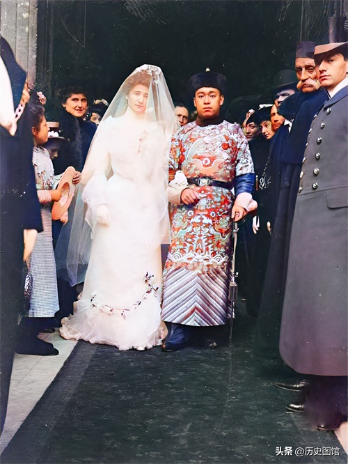 1902年,清朝驻法国二秘馨龄,在法国迎娶了钢琴女教师23岁的吉纳维芙。在众人的围观和祝福声中,两人走进了结婚的礼堂。