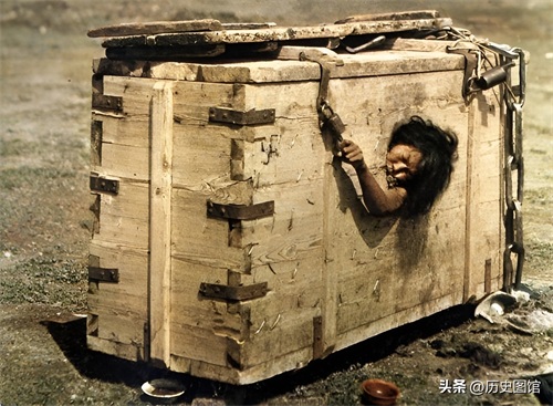 在箱子旁的地面上,放着一只破碗。原来,这是当时蒙古盛行的一种刑罚,将罪犯关进箱子里,自生自灭。
