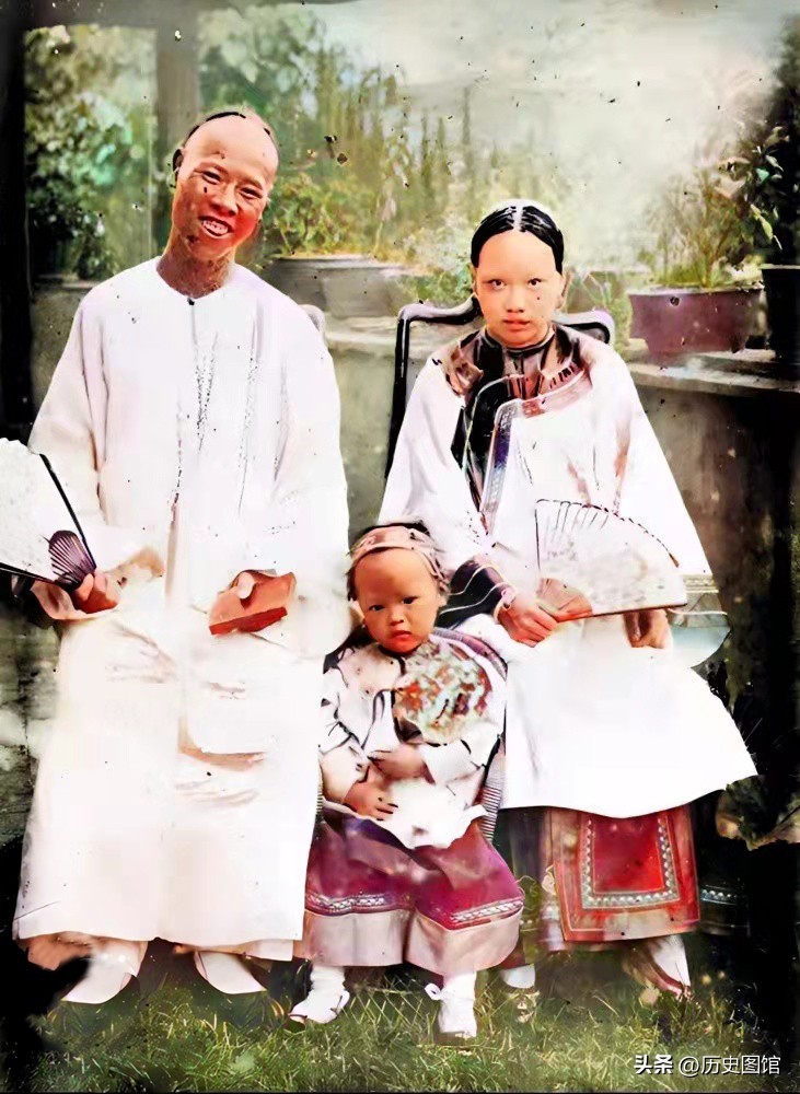 清朝末年,福建。一名家境殷实的男子,和妻女在花园里拍合影照。有人说,以这名男子的长相,放到现在很难找到媳妇。你觉得呢?