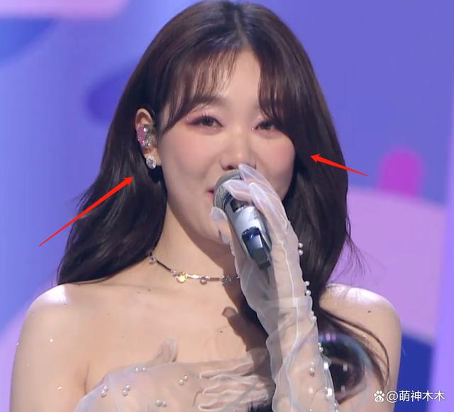 李一桐腮红打太多,玫红色从两颊朝着鬓边进行晕染,上面还点缀了许多亮片,类似于韩系鱼鳞妆,很显然,她是想通过腮红来营造一种清新甜美桃花妆的感觉,但是用力过猛并不显得清新甜美,像是喝醉酒就上台了,而且粉底过白,导致脖子色差明显。