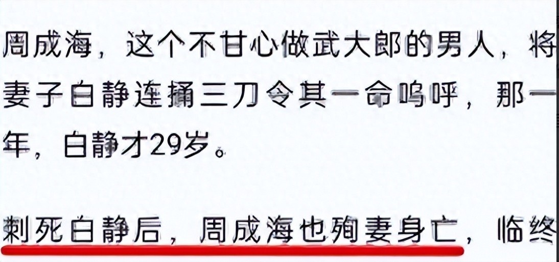 争吵中,周成海情绪失控,将白静杀害,之后,他留下遗言自杀身亡,可见周成海是真的绝望了。