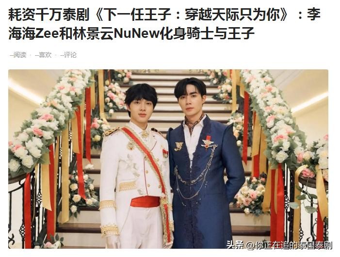 耗资千万打造泰剧《下一任王子:穿越天际只为你》:李海海Zee和林景云NuNew化身骑士与王子