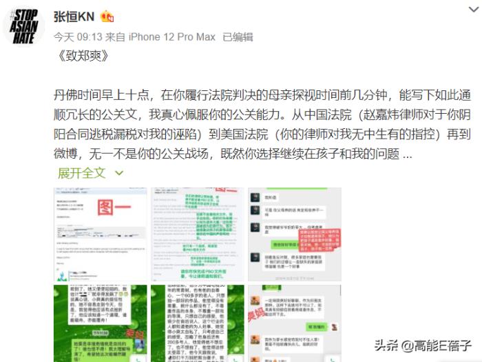 不知道此举是否激怒了张恒,今天一早,张恒也发了长文,再次晒出聊天记录等证据,不但爆出郑爽弃养,还曾与前男友亲吻给自己戴绿帽子的劲爆消息,相当精彩。
