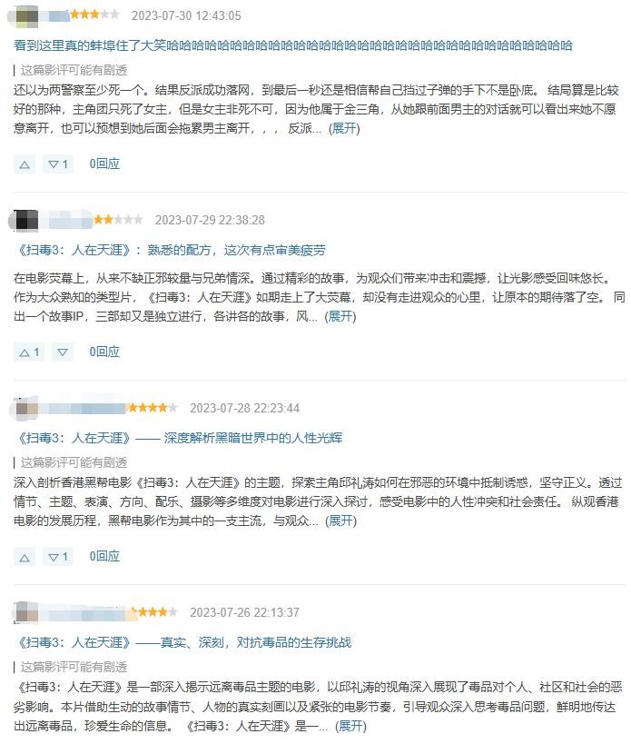 第八部:扫毒3:人在天涯,豆瓣评分5.8分