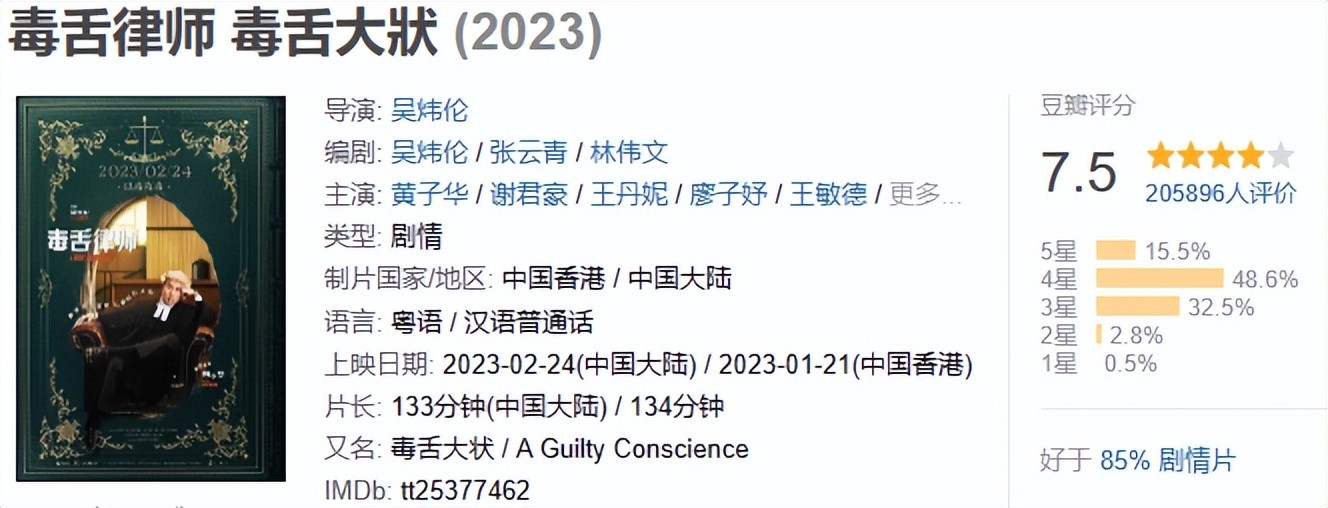 第一部:毒舌律师,豆瓣评分达到7.5分