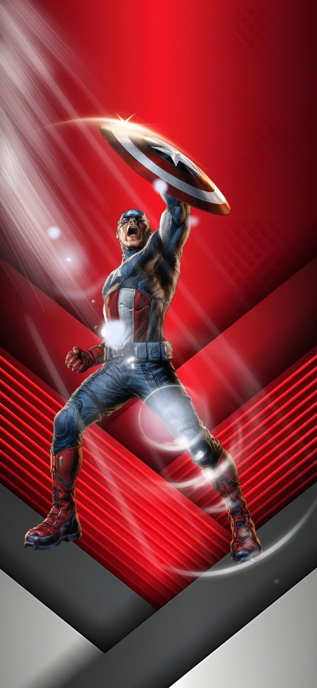 我很喜欢美国队长的那个带有现代感的盾牌,红色、银色相间,中间五角星特别好看。下面这些壁纸的背景,都是都是福图一刻精挑细选、用2张以上的图片拼接而成。